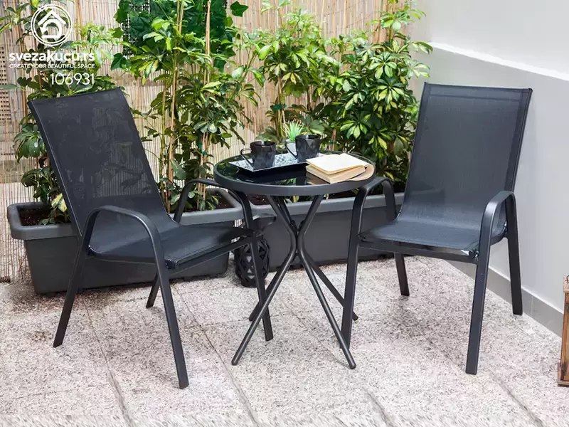 Mali balkoni zaslužuju veliku pažnju. Comodora set sa dve stolice i stolićem je savršen za romantične večeri ili mirno čitanje knjige uz popodnevni čaj. Dizajnirana da ne opterećuje prostor, ona pruža maksimalnu udobnost na minimalnoj površini.