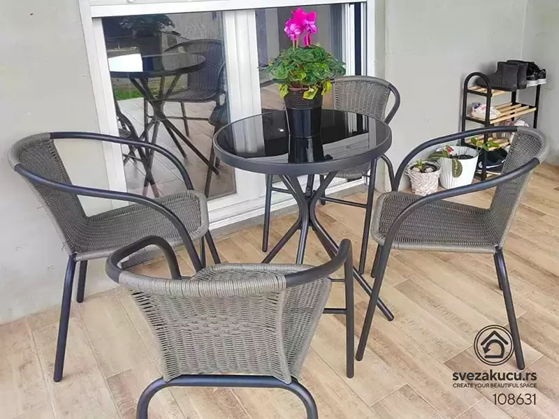 Ako je vaša estetika svedena i moderna, Mozambo je odgovor. Ova garnitura kombinuje izdržljivost metala sa rafiniranim dizajnom. Četiri stolice i prostran sto čine je centrom svake prostrane terase gde se služe elegantne večere pod zvezdama.