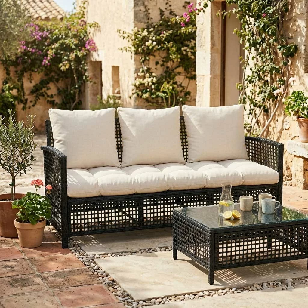 Vaš baštenski trosed biće savršen letnji kutak za odmor sa porodicom ili prijateljima uz komplet mekih jastuka, sedalni i tri za naslon, dimenzija 160x50x50cm, debljine 15-20cm, od glatkog pamuka.