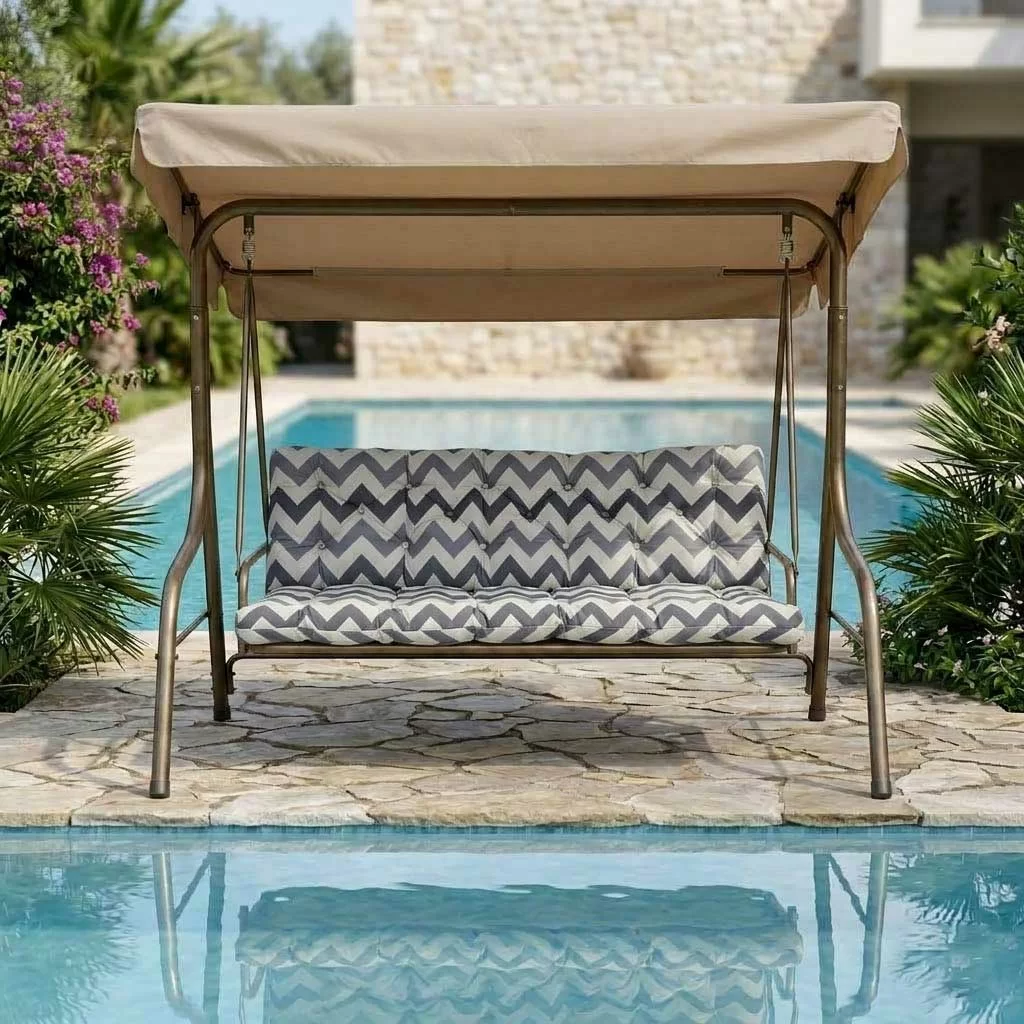Jastuci za veliku baštensku ljuljašku od glatkog pamučnog platna, debljine 15-20cm, dimenzija 180x65x65cm, učiniće da svaki trenutak odmora bude čisto zadovoljstvo.