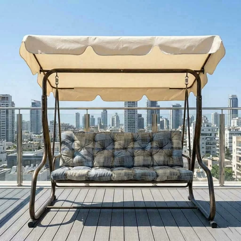 Jastuci za veliku baštensku ljuljašku od glatkog pamučnog platna, debljine 15-20cm, dimenzija 180x65x65cm, učiniće da svaki trenutak odmora bude čisto zadovoljstvo.