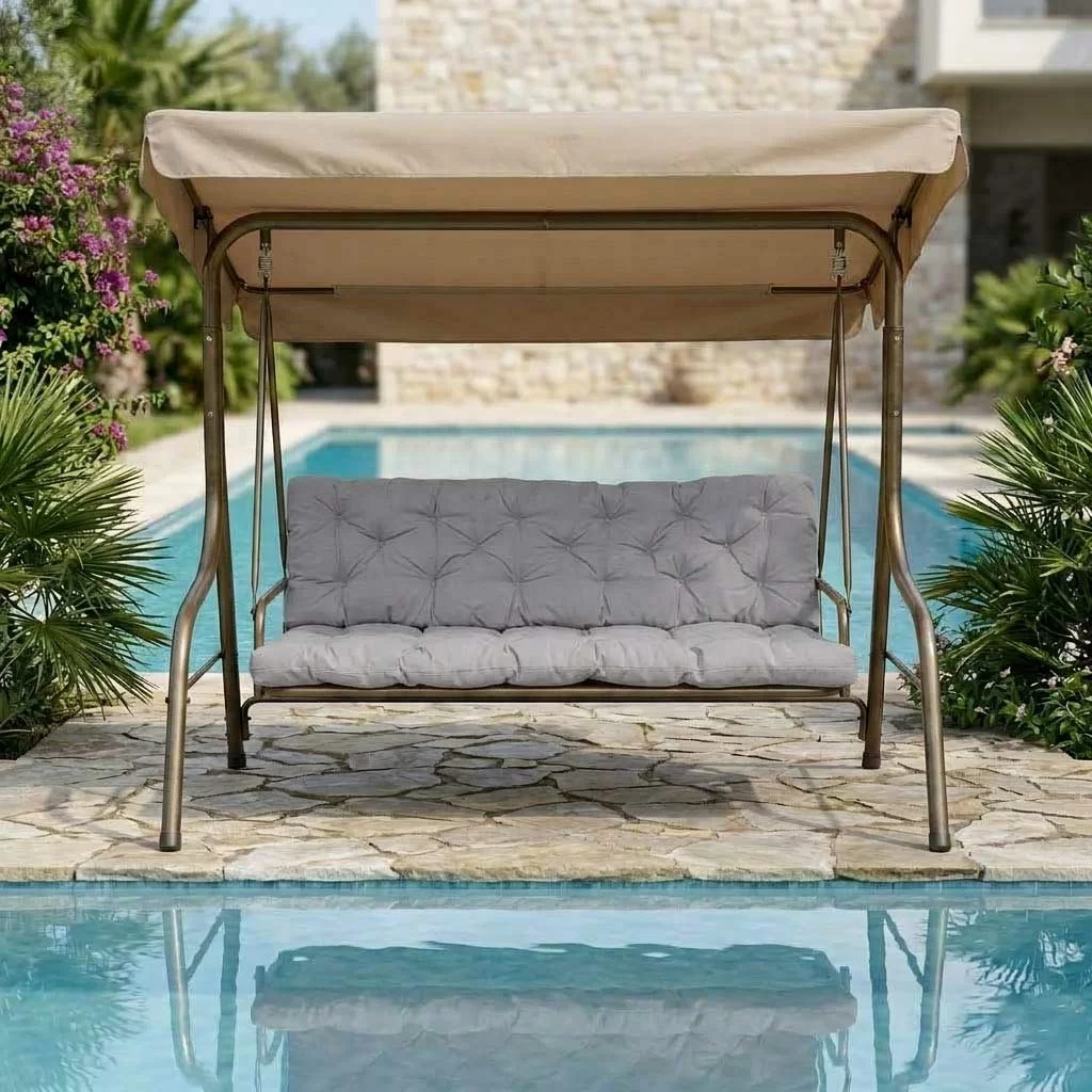 Jastuci za veliku baštensku ljuljašku od glatkog pamučnog platna, debljine 15-20cm, dimenzija 180x65x65cm, učiniće da svaki trenutak odmora bude čisto zadovoljstvo.