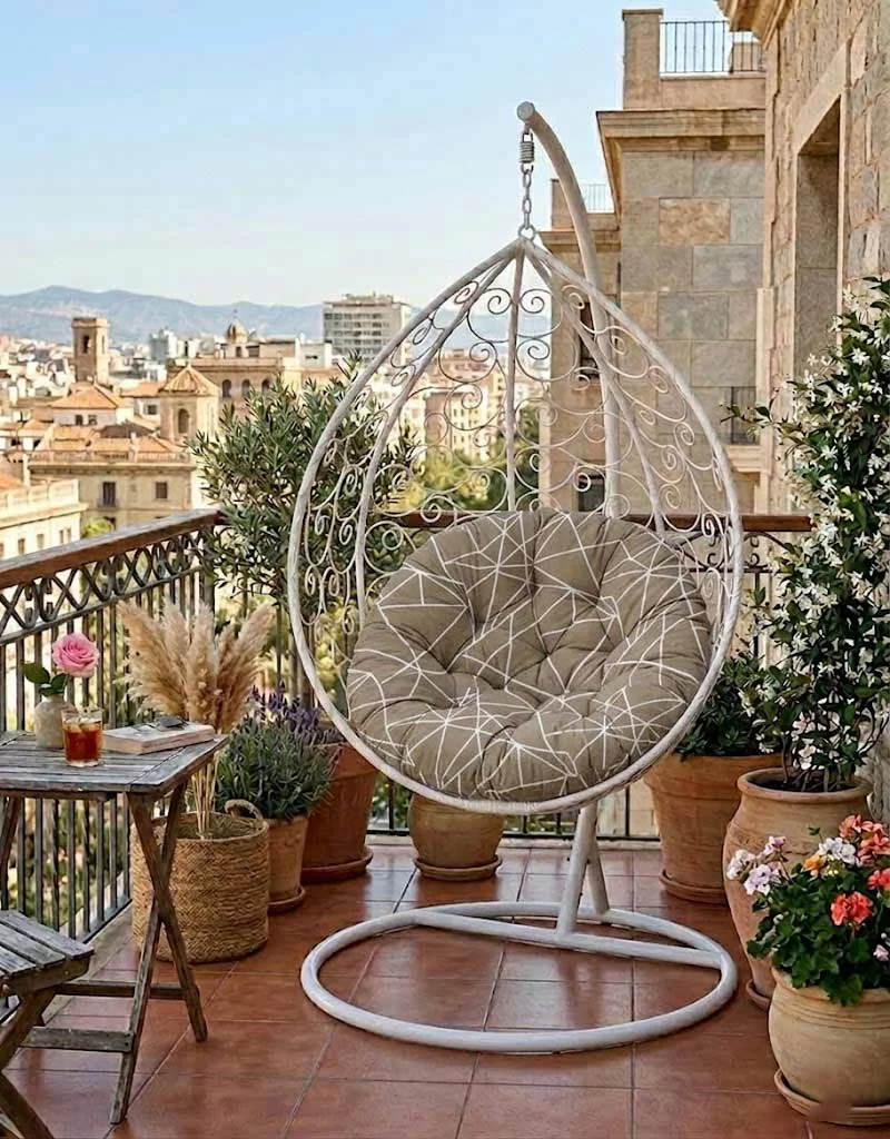 Pamučni jastuk koji će obogatiti Vaš prostor za odmor svojim bojama i mekoćom i baštensku ljuljašku Gnezdo - Jaje učiniti svima omiljenim mestom. Prečnika 120cm, debljine 15-20cm, ima uzice za vezivanje.