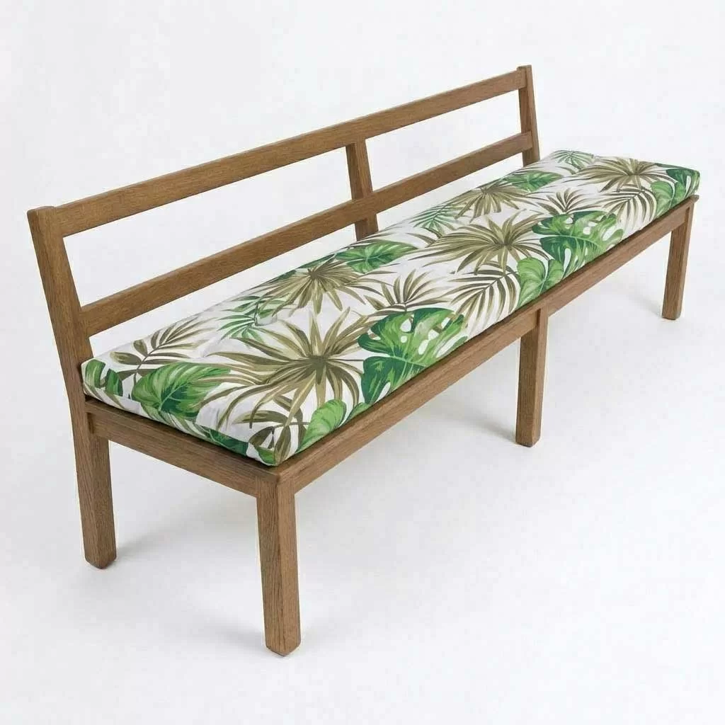 Jastuk za klupu Količina u pakovanju: 1 komad Dezen/boja: JUNGLE Dimenzije: 200x40 cm (DxŠ) Debljina punjenja: 10 cm Materijal navlake: pamuk (posteljno pamučno platno) Materijal punjenja: mleveni sunđer Štepano Sa uzicama za vezivanje za klupu Može se prati, ručno