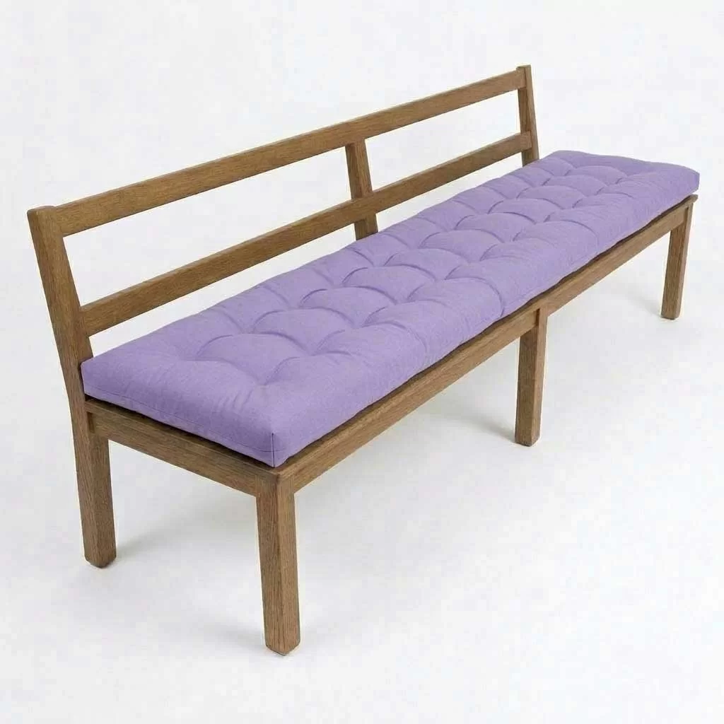 Jastuk za klupu Količina u pakovanju: 1 komad Dezen/boja: LILA Dimenzije: 200x40 cm (DxŠ) Debljina punjenja: 10 cm Materijal navlake: pamuk (posteljno pamučno platno) Materijal punjenja: mleveni sunđer Štepano Sa uzicama za vezivanje za klupu Može se prati, ručno