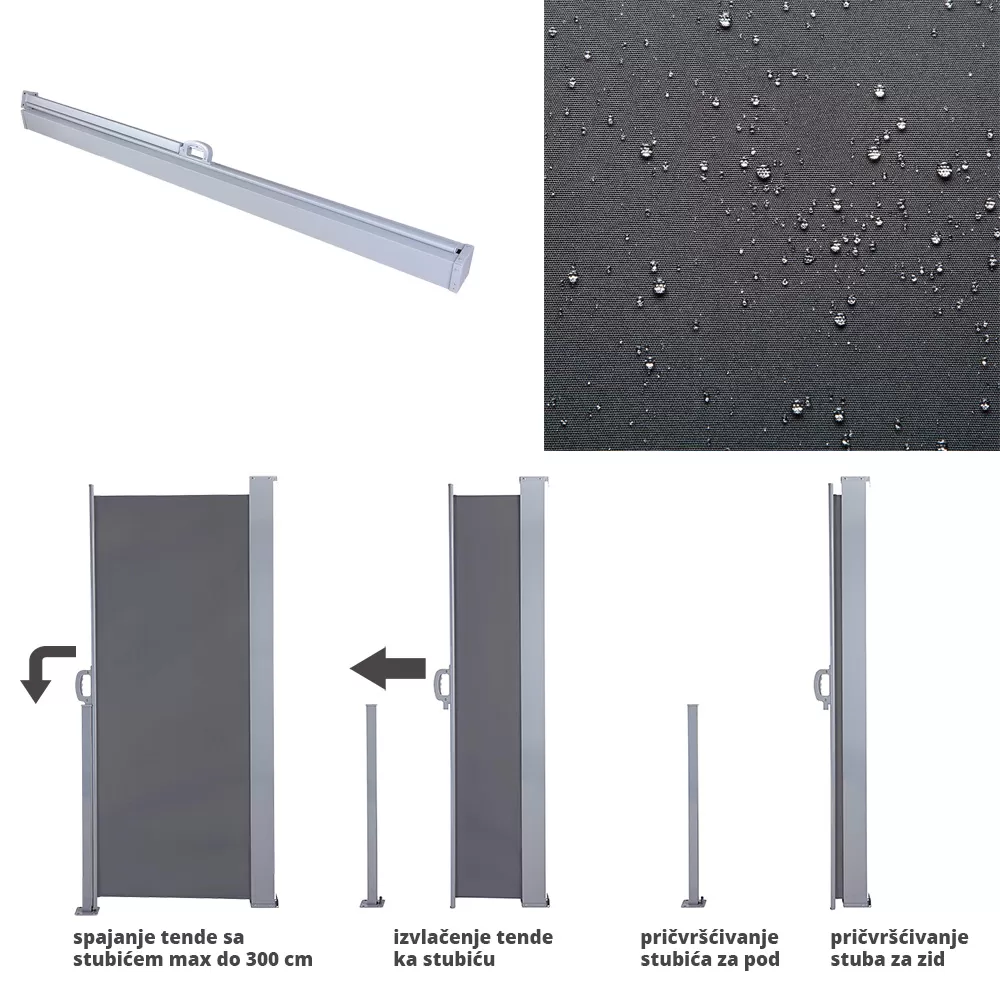 Bočna tenda - zaštita od sunca i vetra - paravan za dvorište i terase 180 x 300 cm