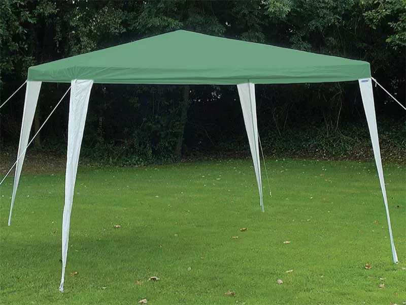 Napomena: U slučaju manjih padavina, kiša se sliva sa krova i ne prolazi kroz njega. U slučaju jakog letnjeg pljuska ili kiše koja pada satima, može doći do nagomilavanja vode na krovu i propuštanja. Jaki udari vetra mogu trajno oštetiti ili polomiti paviljon. Ne ostavljati ga tokom olujnog vremena.