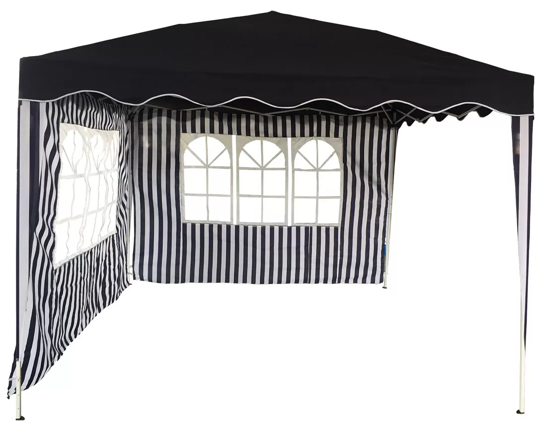 Prostrani dvorišni paviljon dimenzija 3 x 3 m i visine 2 / 2.7 m. Paviljon poseduje 2 bočne strane sa prozorima. Materijal tende je PE 160 g/m2. Jednostavno se sklapa i postavlja, stabilan je i praktičan...